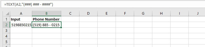 TEXT(value, “(###) ### - ####”)