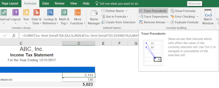 Track down formula errors with Trace Precedents